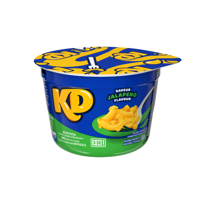 🧀🌶️🥣 Le classique Kraft Mac & Cheese revisité en version Jalapeño : un mélange de fromage crémeux et de piquant relevé, pratique en cup individuelle pour un snack chaud rapide. Carton pro 10 × 58g — parfait pour l’achat d’impulsion.