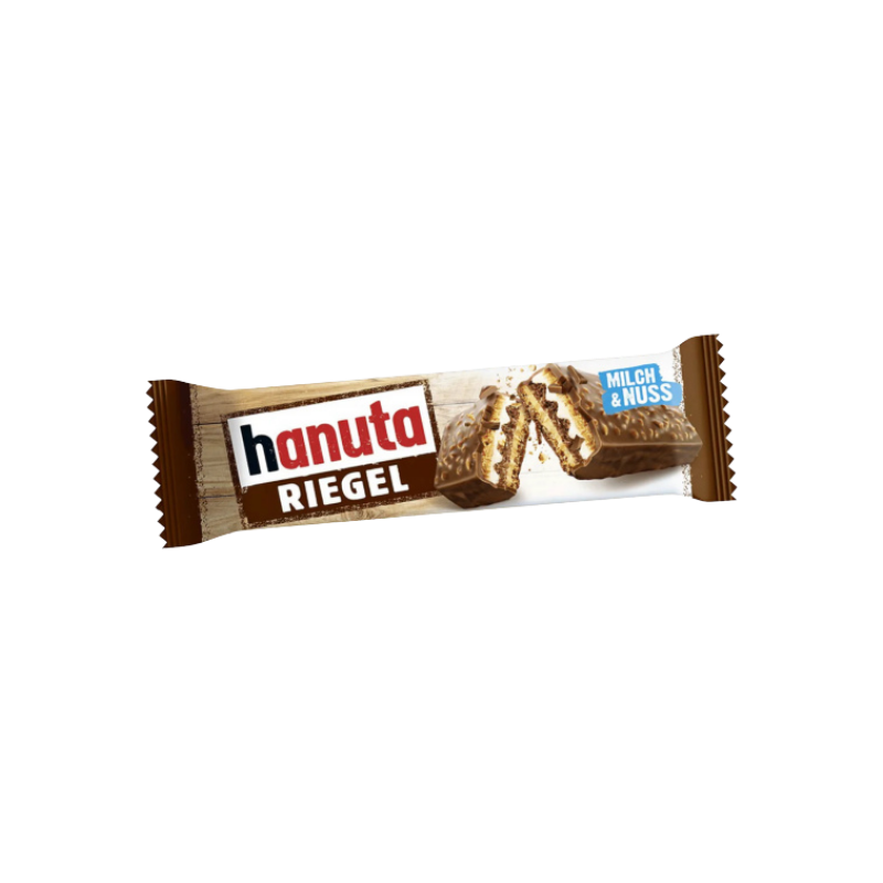 Mots-clés: Hanuta Riegel, Hanuta, Riegel (barre wafer), grossiste, ExoDrinks Pro, B2B, carton 14x34,5 g, snack tendance, épicerie de proximité.
