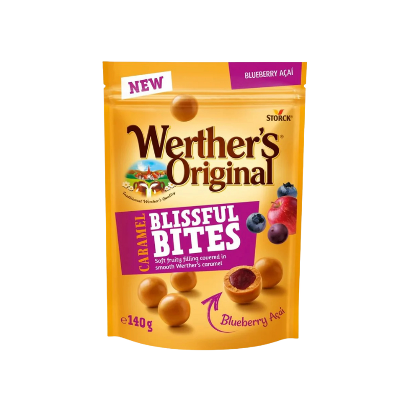 Werther's Original Blissful Caramel Bites Blueberry Açai – Carton 16 × 140 g 💜🫐🍯 La gourmandise prend une touche fruitée... En savoir plus